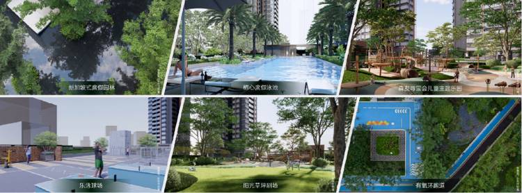 1.高绿化率: 项目绿化率高达40.13%,采用“新加坡度假花园”设计理念,打造约2.3万平方米的方格网式园林。