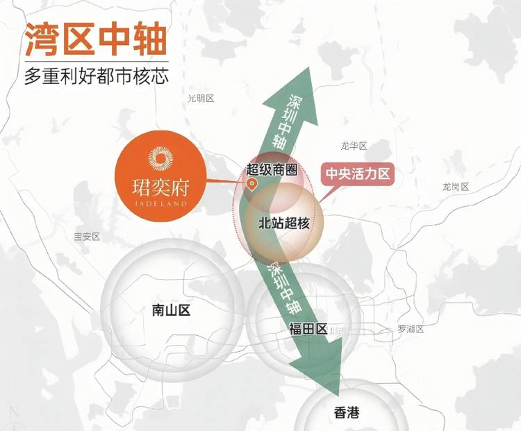 卓越珺奕府二期,坐落于城市发展的重要节点,紧邻赤岭头城市更新单元,地理位置得天独厚。项目南侧临近深圳湾,海天一色,风景宜人。北侧是羊台新村,东侧紧邻赤岭头二村(均已是城市中村),西侧则与龙华实验学校隔路相望。项目周边交通便利,4号地铁线“龙胜站”近在咫尺,步行约10分钟即可到达,轻松畅达全城。更值得一提的是,规划中的深圳北站至大亚湾城际轨道线(龙胜站),将进一步提升区域交通枢纽地位,未来通达便利性将大大增强。