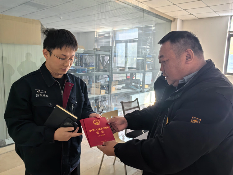 最后,高新区综合管理局工作人员向该公司发放《中华人民共和国宪法》《中华人民共和国反有组织犯罪法》《中华人民共和国安全生产法》等法律书籍和宣传册,让企业利用业余时间组织员工们加强法律法规学习,不断增强法治意识。