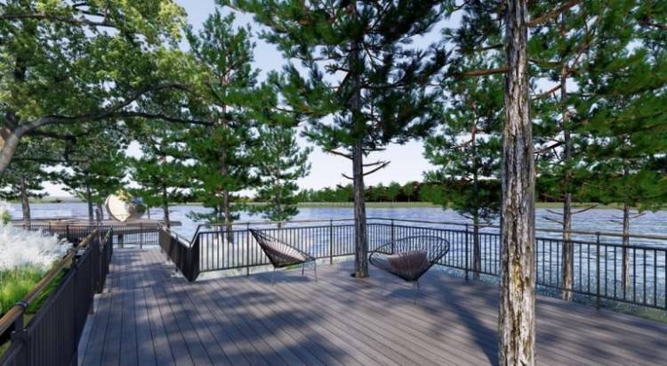 一境·见山:入园伊始,绿荫环绕,湖光潋滟。人行于临湖栈道之上,感受风有声而水静语的自然韵律。项目不惜重金投入在红线之外打造临湖栈道与观景平台,将湖岸景致真正“私享化”,让业主拥有专属的观景空间,静享天光云影的变幻。