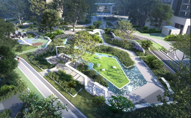 在城市化进程加速的当下,居住价值的评判标准已从单一空间尺度转向综合资源整合能力。拾悦城楠园选址于定岗湖公园北侧,直线距离约100米的天然优势,使9.5万㎡水域成为社区的自然延伸。生态栈道与亲水平台构成的慢行系统,与社区内部超万㎡中央园林形成梯度式景观带,实现了从城市公共空间到私属领域的自然过渡。