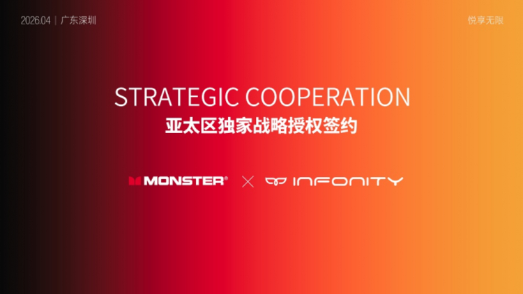 2026 年 4 月,深圳悦享无限科技有限公司(以下简称 "悦享无限"或“INFONITY”)与国际音频巨头MONSTER(魔声)正式达成亚太区耳机品类独家战略合作。INFONITY(悦享无限)获授权成为MONSTER(魔声)品牌耳机类产品在中国、东南亚、日本、韩国等亚太地区的独家授权运营商。这一里程碑式的合作,标志着INFONITY(悦享无限)在高端音频领域的战略布局迈出关键一步,也为MONSTER(魔声)品牌在亚太市场的深耕注入全新动能。