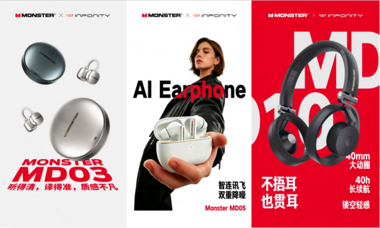 自确认独家合作以来,INFONITY(悦享无限)为MONSTER(魔声)耳机及音箱新的发展,制定了产品、营销、渠道全方位的战略。新一代MONSTER耳机以专业音质X潮流外观为核心定位,延续品牌声学底蕴,打造全场景新品矩阵。荣获设计大奖的 W88 夹耳式耳机、热销爆款 MD03 真无线耳机、升级圈铁与动圈有线耳机、NBA 联名款及珠宝时尚 Opus1 系列齐亮相,兼顾高解析原声、AI 降噪、舒适佩戴与潮流设计。Monster Altima FV1 影院音箱更斩获 GAS2026 产品创新大奖,以硬核技术与时尚美学双向突破,重塑专业音频的潮流新表达。