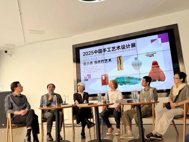 足欣赏时,能自然而然地产生‘这能放进我家'的期待。”曾辉在沙龙开场时,便将话题与展会的核心定位紧密衔接。他特别提到,倪小舟的竹艺术作品“断竹”与“音竹”系列之所以成为展览焦点之一,正是因为精准契合了这一思路,该系列以“日用即道”为理念核心,从传统竹刻、当代竹艺术到竹制灯具设计,每一件作品都紧扣“非遗之美走进今日生活”的实际需求,在展览现场已引发不少观众主动询问“家庭”,成为展览“让非遗服务生活”理念的生动注脚。